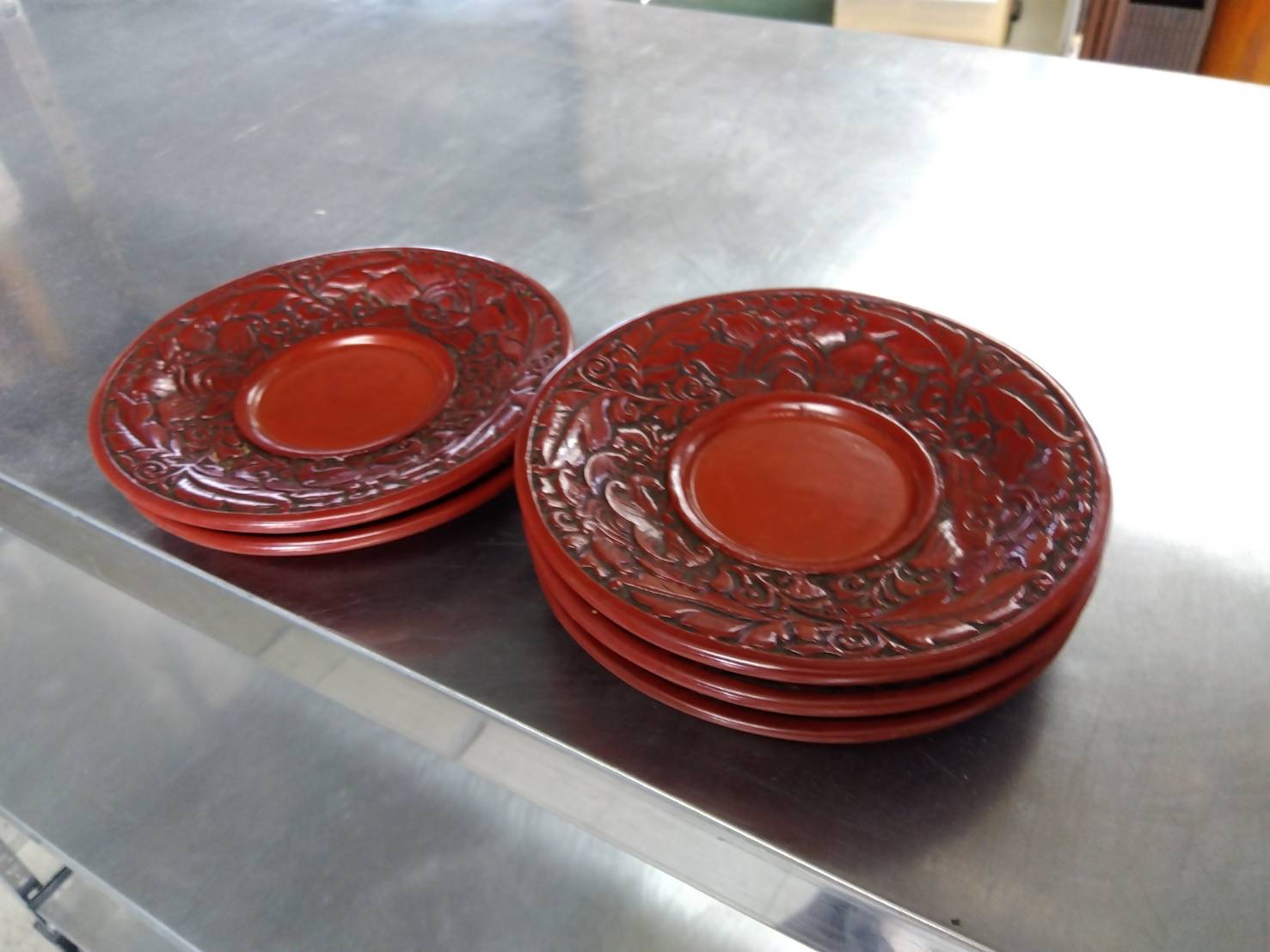 また鎌倉彫の茶托は、木と漆の質感が落ち着いた雰囲気を演出し、茶道具として高い評価を受けています。