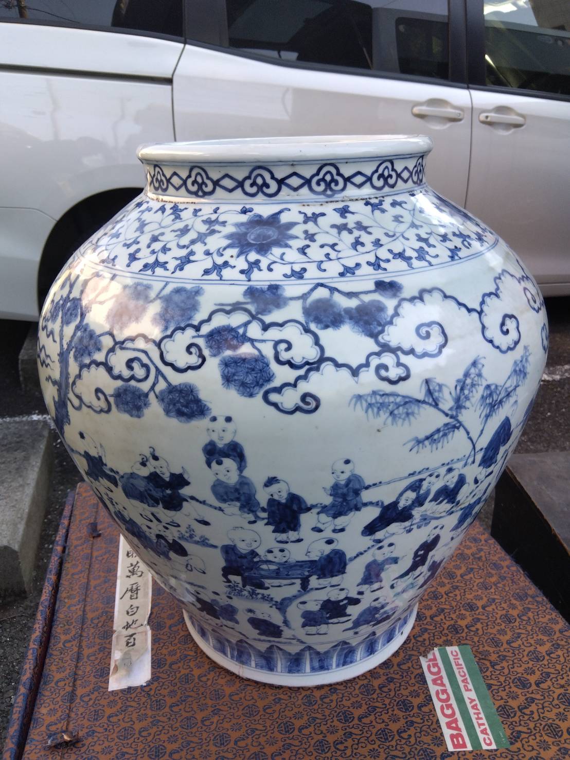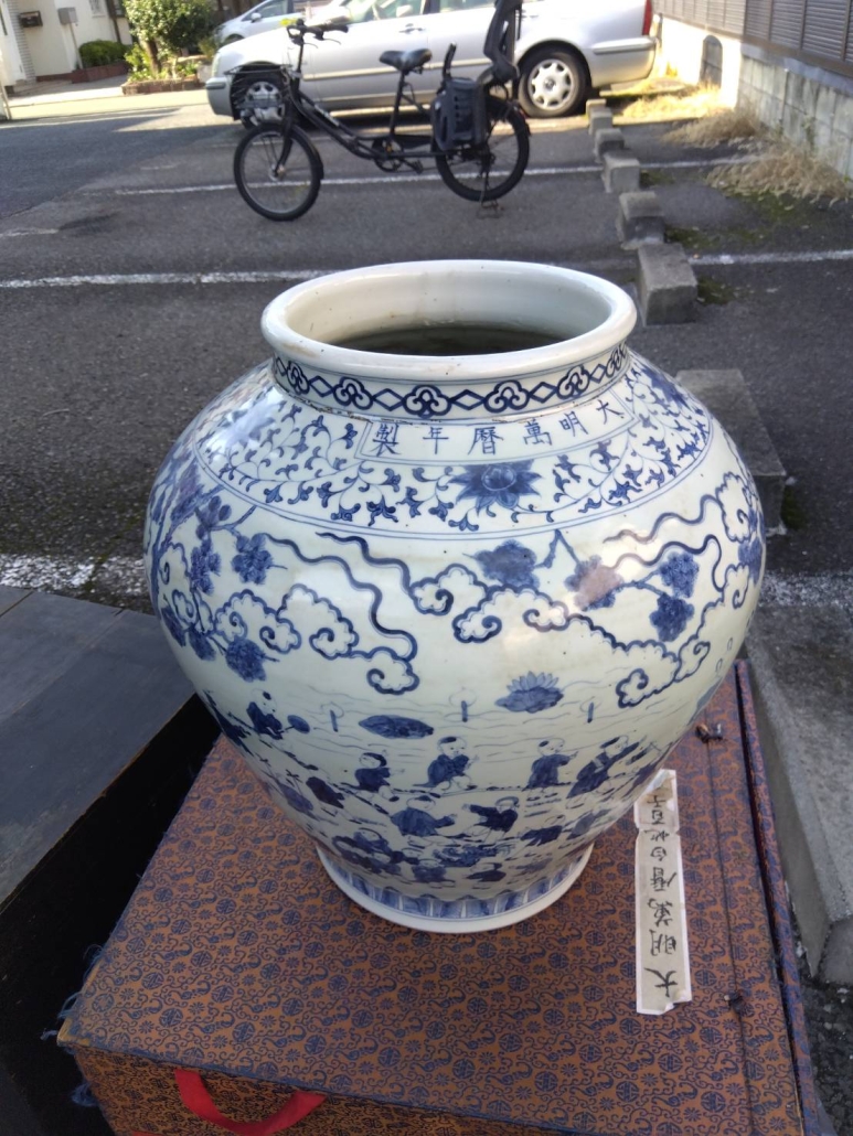 遺品整理に伴い買取した「萬暦白地 百子図 大壺」|東京都世田谷区上野毛にて不用品の片付け・買取