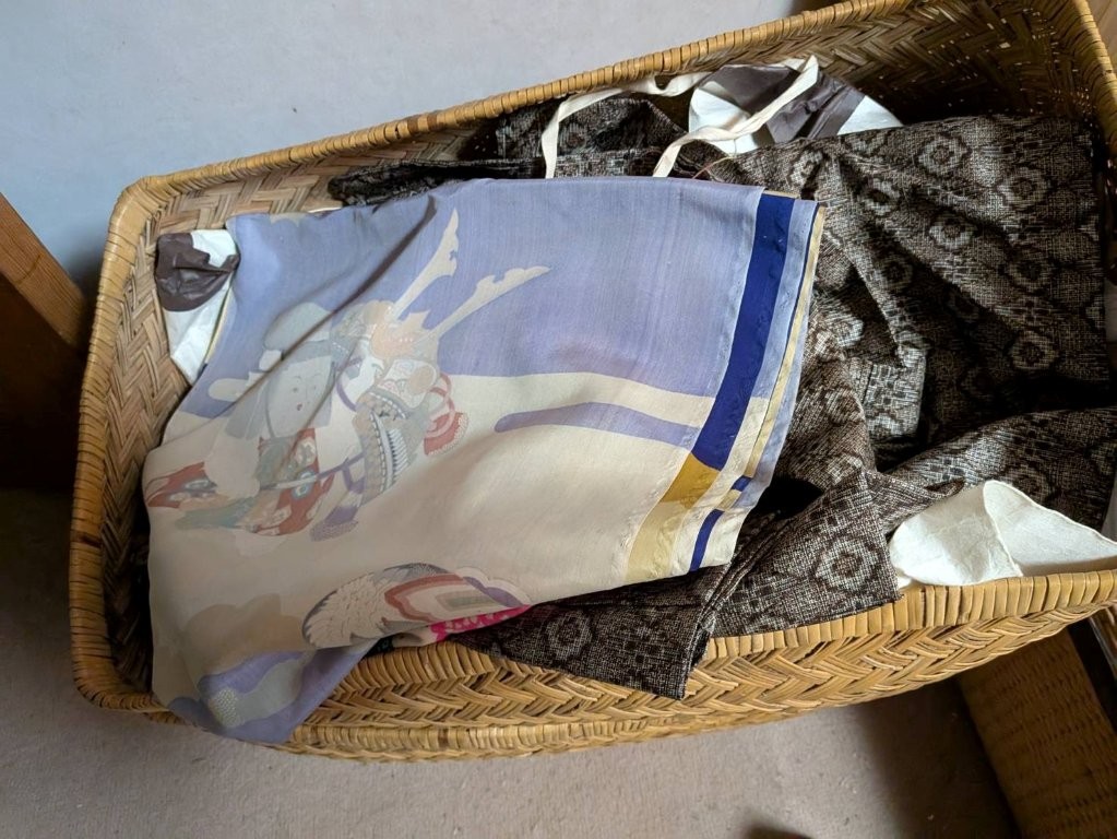 現地に伺うと、籠に丁寧に畳まれた数点の着物。